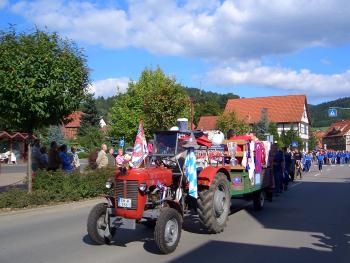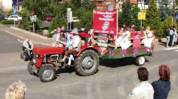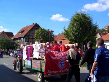 Einer der jährlichen Höhepunkte: Teilnahme am Kirmesumzug in Trusetal mit eigenem Wagen.