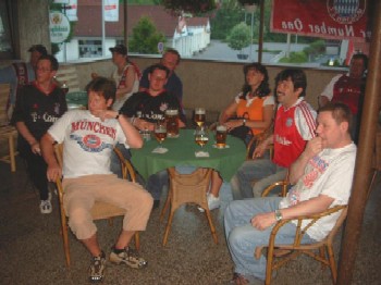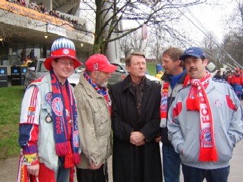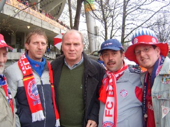 Uli Hoeneß und Werner Olk im Bilde mit den Trusetaler Bayern-Fans: