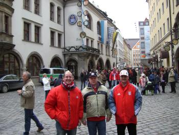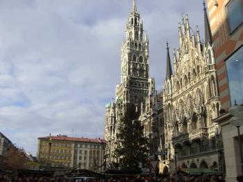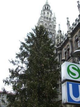 Das Münchner Rathaus auf dem Marienplatz mit Weihnachtsbaum und die Trusetaler mittendrin statt nur dabei: